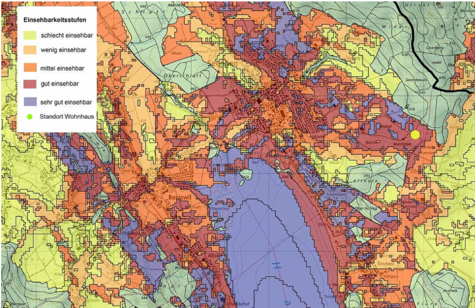 Mit diesen Analysen können Massnahmen und Bauprojekte auf ihre optischen Auswirkungen überprüft oder visuell empfindliche Landschaftsräume bezeichnet werden.